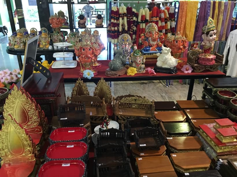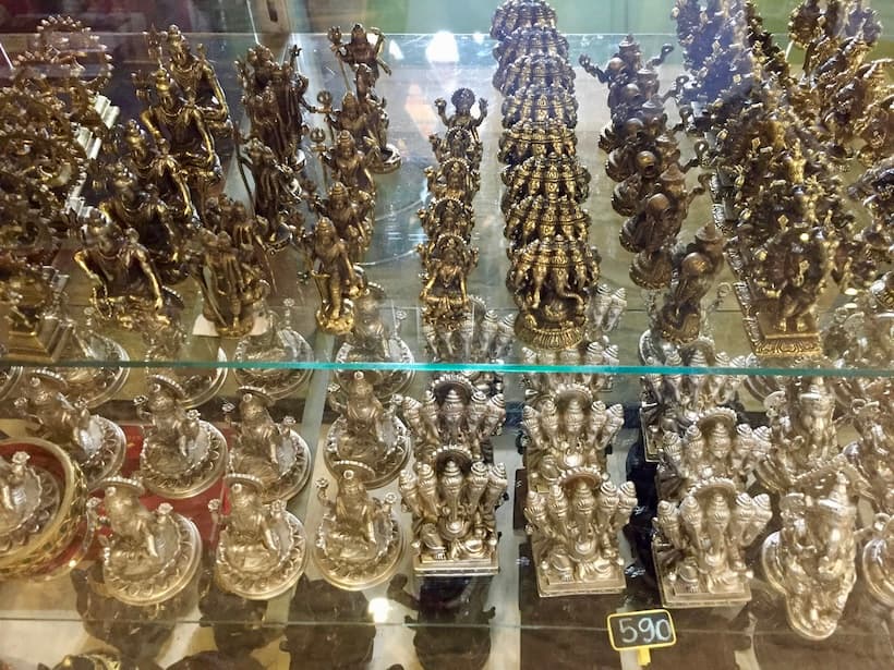 ガネーシャ像を販売するお土産コーナーもあり、さまざまなサイズやデザインの像が並んでいます。